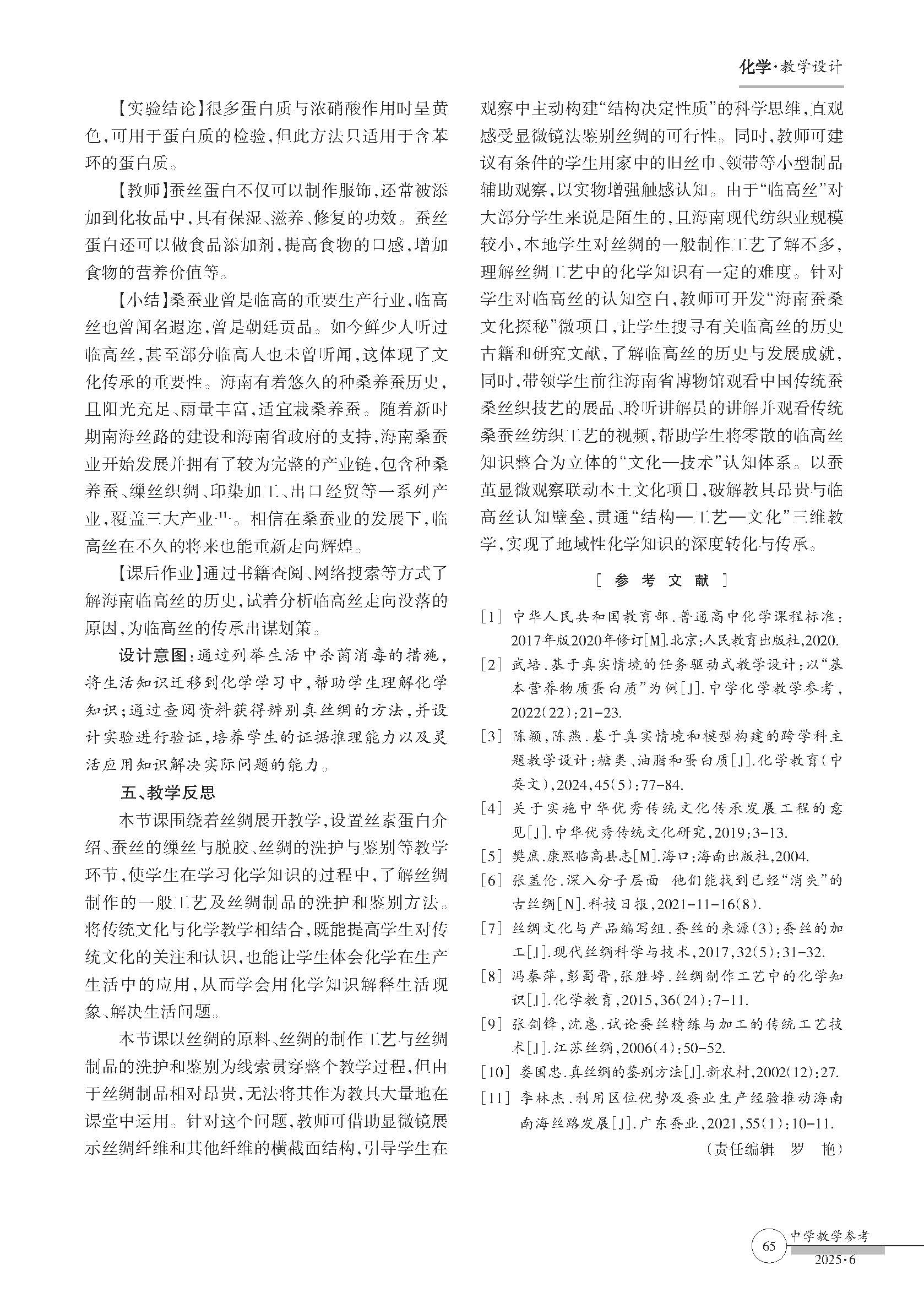 人大复印转载| 传统文化视角下的高中化学教学设计 ——识丝绸新面,学蛋白新知